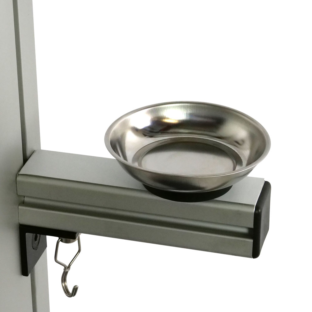 The magnet is located in the rubberized base of the tray. This ensures that screws and other small magnetic parts remain safely in the magnetic plate.