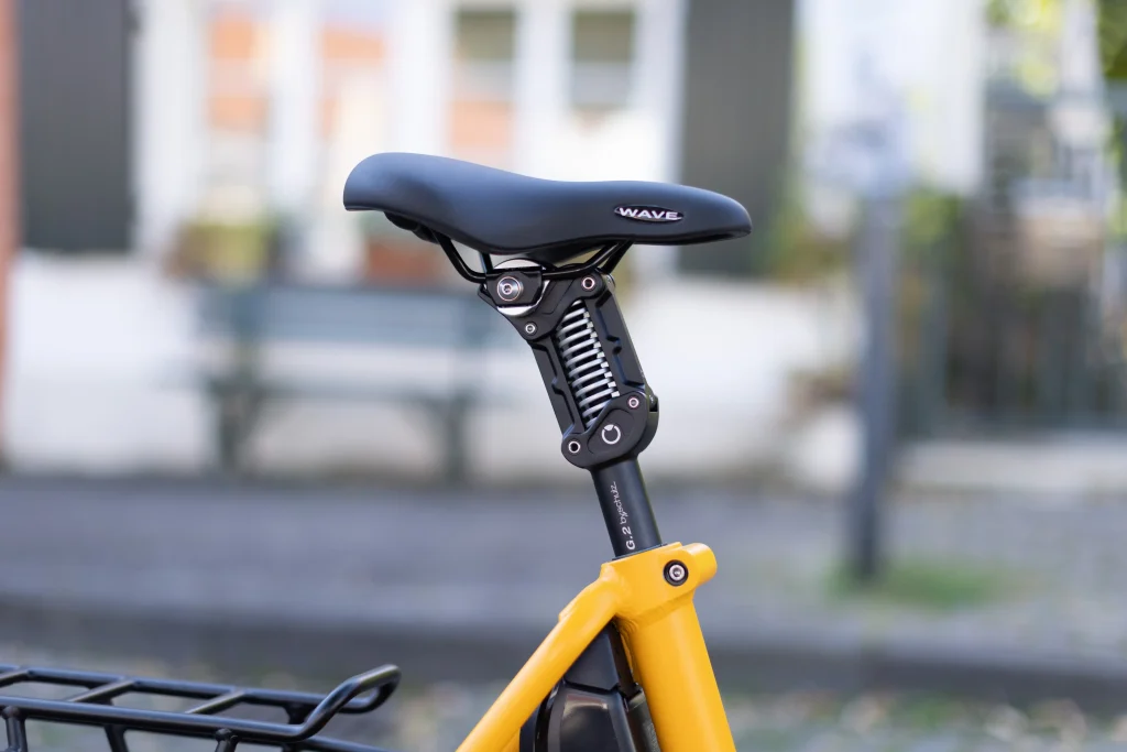 Damit engagierte (E)-City- und Tourenfahrer auf holprigen Feldwegen oder rauen Schotter-Intermezzi Maximalfahrspaß erfahren, gibts die verbaute Stahlfeder in 5 Federhärten – zur Abstimmung aufs Fahrergewicht.