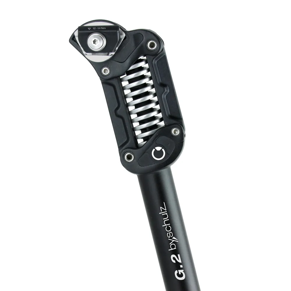 This G.2 LT – parallelogram suspension seatpost represents the best by,schulz quality. This is illustrated by the 3D forged aluminum construction, which is aimed at maximum stability even for heavy riders. The spring mechanism, which runs on high-performance polymer plain bearings, guarantees finely responsive suspension and top riding comfort.