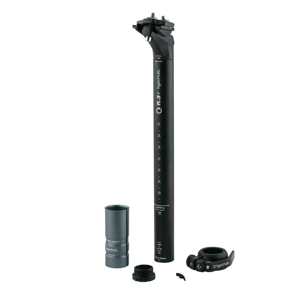 The by,schulz R.3 P-QR seatpost with anti-theft device allows you to adjust the seat height conveniently and without tools using the quick-release function.