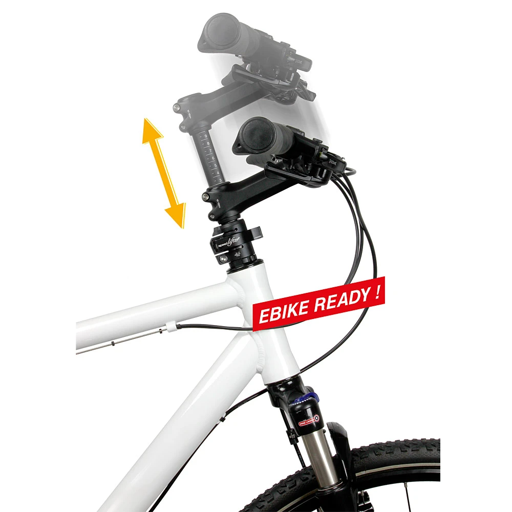 This is because the height of the handlebars is crucial for riding comfort. However, there is no ideal handlebar height. A different handlebar setting is recommended for uphill than downhill or for straight stretches.