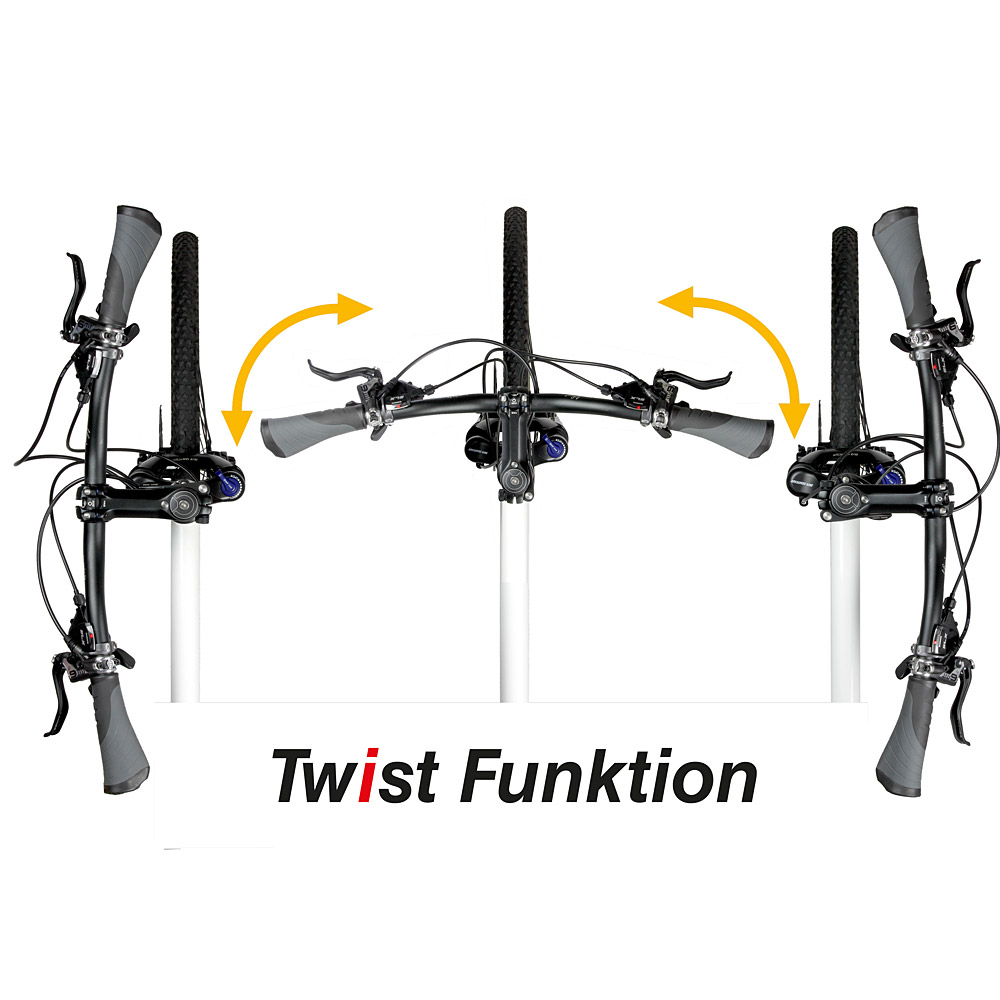 The storage miracle in the garage, narrow hallway or bike cellar is this stem system for 1 ⅛” threaded steerer tube by means of the super practical twist function: The quick-release lever allows the , seconds to turn the stem simply by hand. Optionally by 90 ° to the left or right.