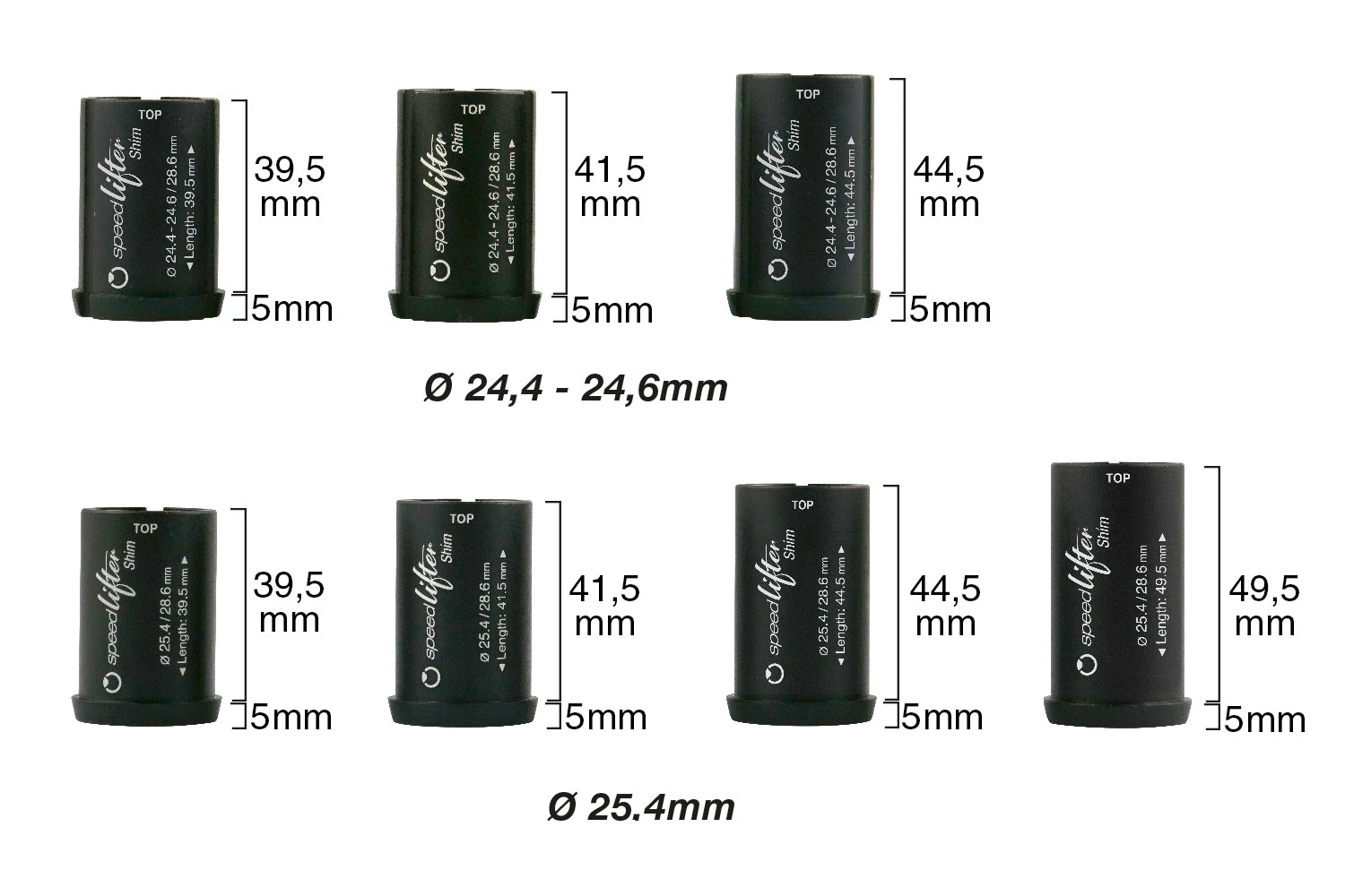 Für den Einbau bei 1 ⅛“ A-Head Fahrradgabeln, werden in Kombination mit Speedlifter Classic und Twist speziell für Vorbauten designte Reduzierhülsen mit 5mm Anschlagbund verwendet. Sie sind aus Aluminium, geschlitzt und schwarz eloxiert. Da A-Head Vorbauten mit unterschiedlich hohen Klemmbereichen angeboten werden, gibt es die Speedlifter-Reduzierhülse in unterschiedlichen Bauhöhen und Innendurchmessern mit einem einheitlichen Außendurchmesser von 28,6mm.