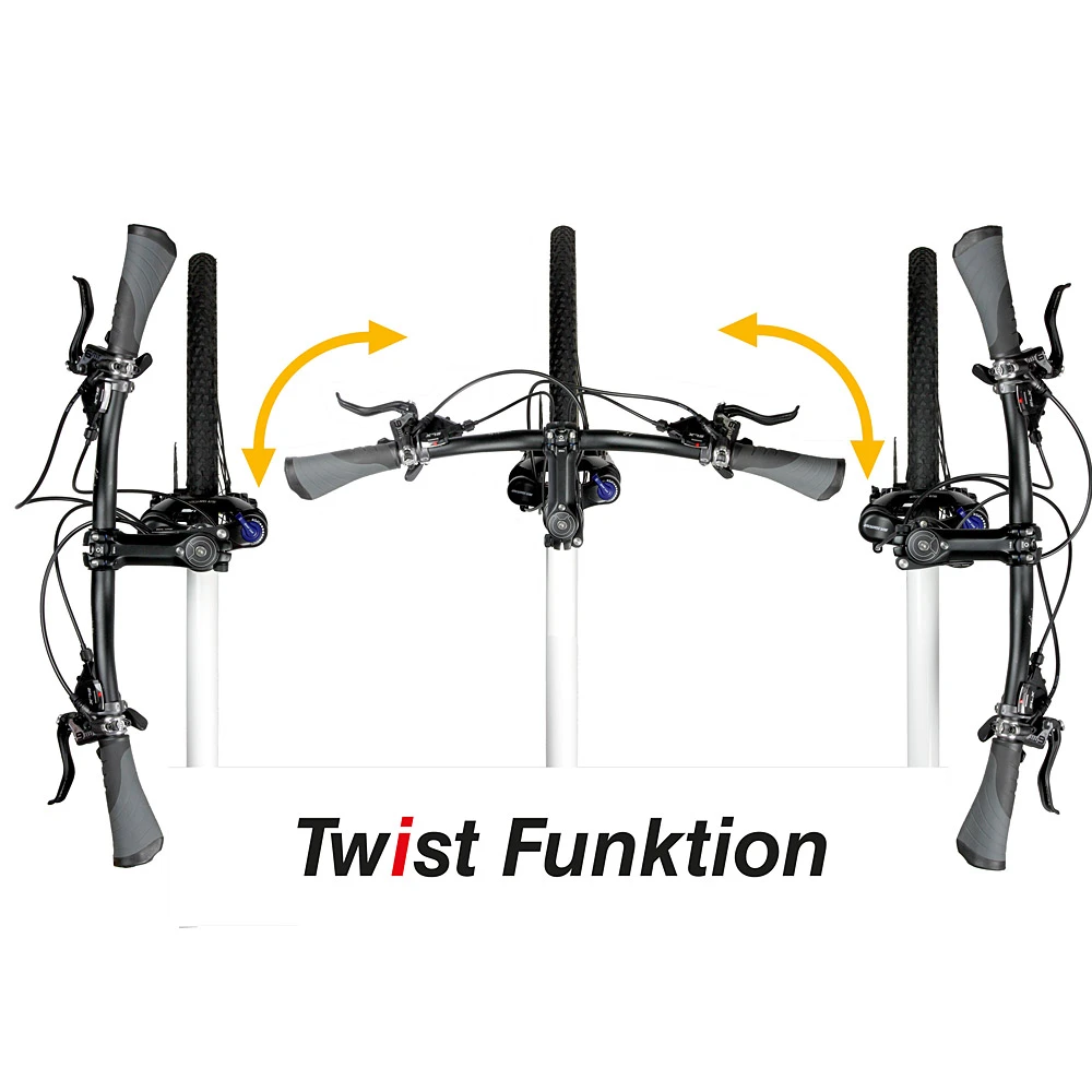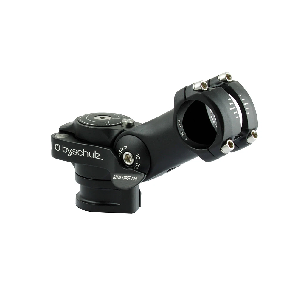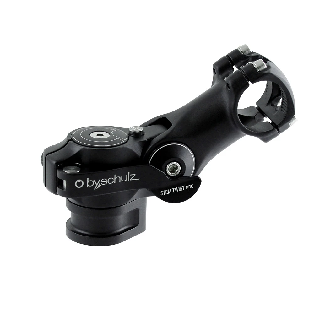 Eine Top-Ergonomie auf dem Trekking- oder Citybike ist essentiell, um Fahrfreuden auch während langer Touren zu erleben. Damit dies unabhängig von Körperbau und Fitness gelingt, hat by,schulz den Stem Twist Pro SDS Vorbau als Weiterentwicklung des Stem Twist erdacht. Zur ergonomischen Anpassung ist dieses flexible Vorbausystem von -20° bis +60° winkelverstellbar. So variiert man Lenkerhöhe und Fahrcharakteristik individuell. Letztere definiert man via robustem Verstellgelenk von gemütlich-aufrecht bis sportiv. Zum Stauwunder im engen Kellerabteil wird der 1 ⅛“-Ahead-Vorbau mittels der super praktischen Twist-Funktion: Der Schnellspannhebel erlaubt das sekundenschnelle Drehen des Vorbaus um 90° nach links oder rechts. Dank stabiler Schmiedekonstruktion eignet sich der Twist Pro auch fürs MTB oder E-Bike. An der SDS-Vorbau-Frontkappe kann beispielsweise ein Navigationsgerät montiert werden.